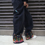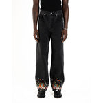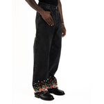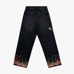 Our Relaxed Fit is constructed to be a baggier and more relaxed denim fit than our previously produced denims. Featuring our unique branded bird on the back right section of the denims, contrast red stitching down the sides of the legs, and picture-perfect floral embroidery on the bottom section. Finished off with five pockets, custom rivets and metal clips.